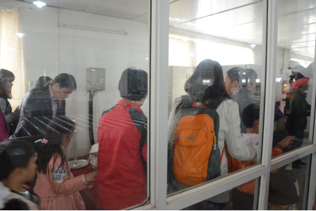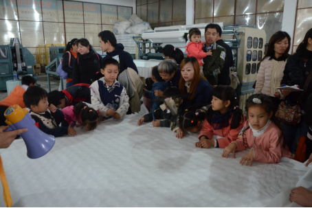 萌娃和家長(zhǎng)們參觀床墊碾壓8萬(wàn)次試驗(yàn)