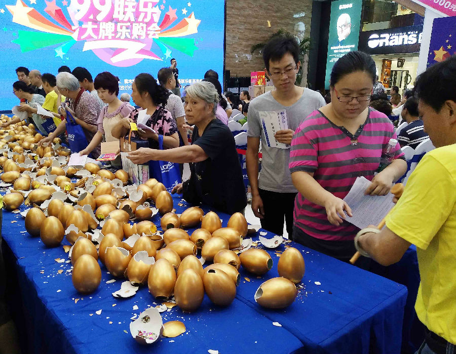 交款大軍排成幾條長龍 一桌桌金蛋被砸的稀里嘩啦
